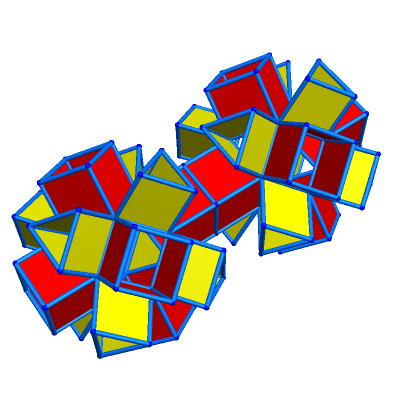 You can then join two of these compounds together to end up with a ‘square’ of prismatic cuboctahedra: